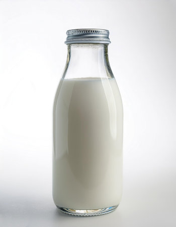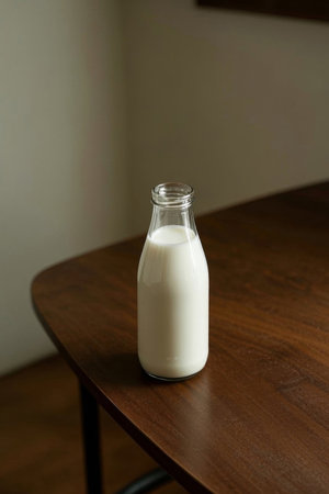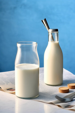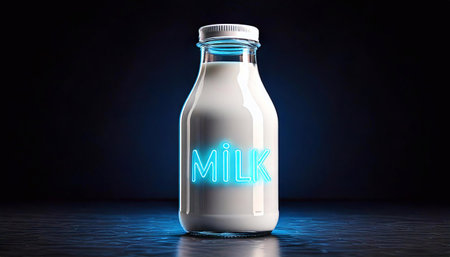 Illustration of a bottle of milk, animal protein source, using generative ai