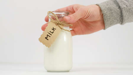 Fresh milk concept. Buy organic products at farmers markets. Best quality goods for your child