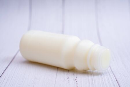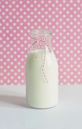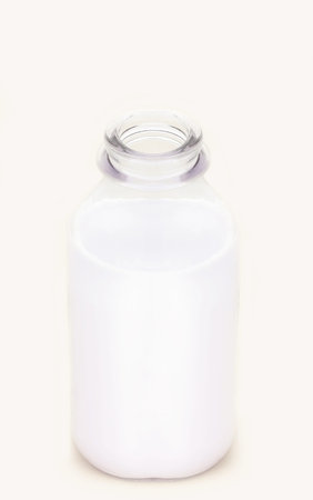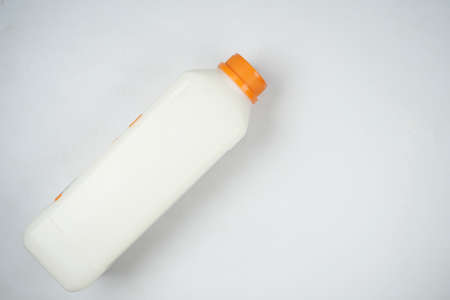milk bottle on white background. Healthy dairy products. Natural drink for proper nutrition. Lactose, amino acids and protein source. Copyspace concept