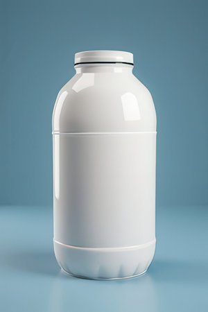 White plastic bottle on blue background. 3D rendering. Mock up.