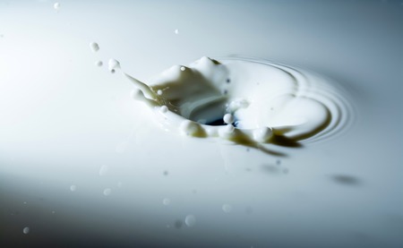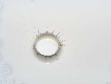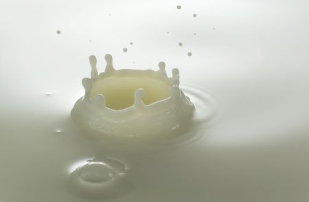 A small milk drop fall on milk surface and bounce back, forming a beautiful splash