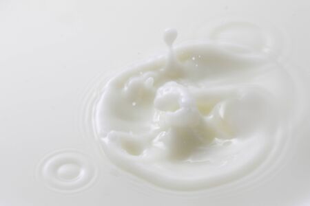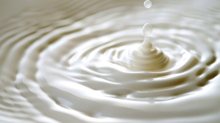 Drop falling on milk, cream, dairy product. Yogurt milkshake swirl texture. Graphic design element for packaging, advertisement flyer, poster. Cream splash with circle ripple and drop.