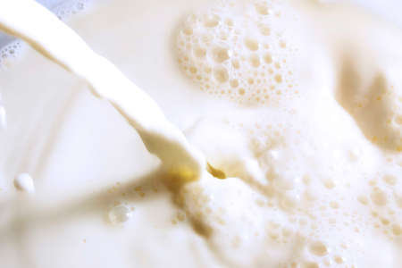 Fresh milk jet and bubbles, close-up