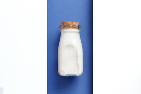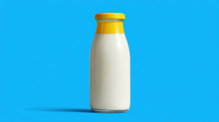 Milk in a transparent bottle set against a bold color background. The vibrant colors bring out the rich, creamy texture of the milk, ideal for modern and fresh themes.