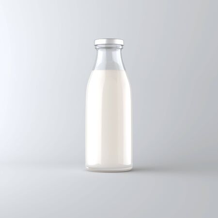 milk bottle on white background. Healthy dairy products. Natural drink for proper nutrition. Lactose, amino acids and protein source. Copyspace concept