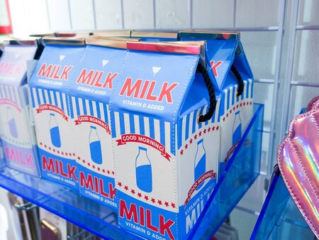 Fresh milk concept. Buy organic products at farmers markets. Best quality goods for your child