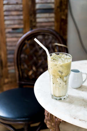 iced green tea with milk in cafe