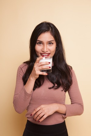 Women hands holding white glass of milk pouring from bottle. Asian women smile laugh look at camera health care home fitness lifestyle. Beautiful female drinking fresh milk low-fat dairy free lactose