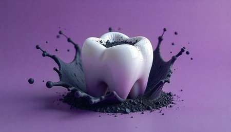 Toothbrushing concept featuring a tooth in a charcoal explosion