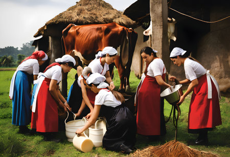 Worker use cow milking facility and mechanized milking equipment for produce raw milk to dairy plant