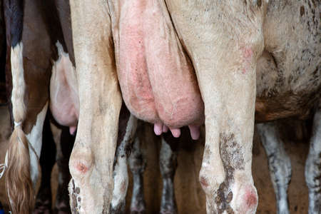 Close-up of a milk cow's udder on a farm