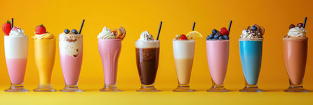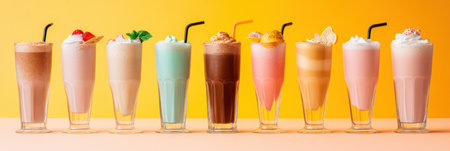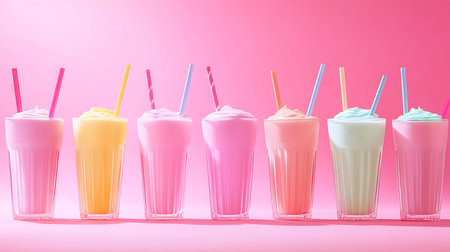 A delightful showcase of colorful milkshakes in a bright perfect for sweet treat lovers.
