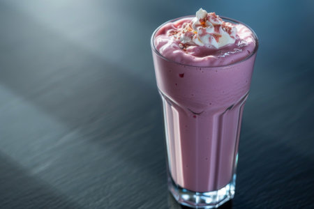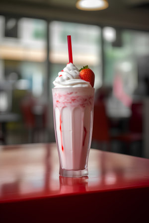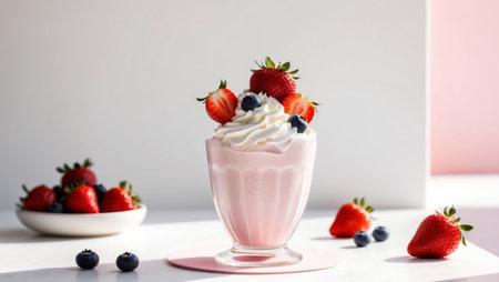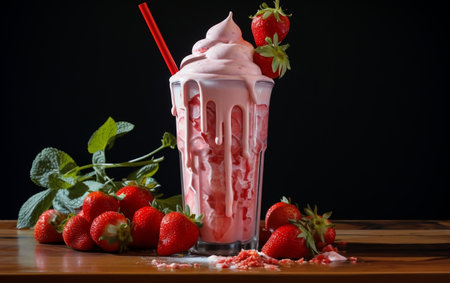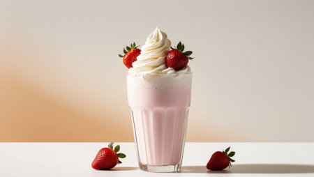 AI Generated. Refreshing strawberry milkshake served with whipped cream and berries