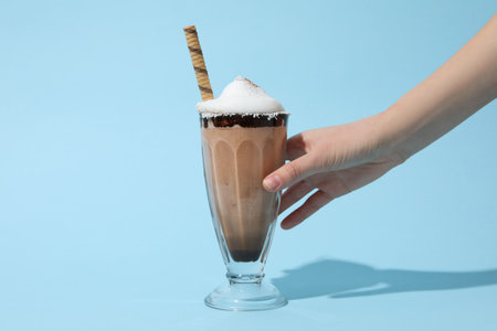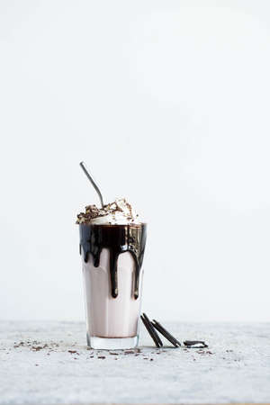 Concept of delicious sweet drink - chocolate milkshake