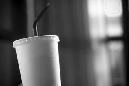 Drinking plastic cup with disposable straw as a rubbish trash