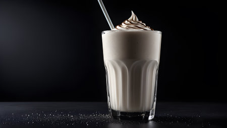 Milkshake with whipped cream in a glass on a black background. generated by AI