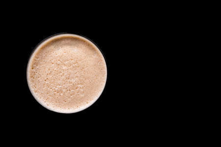 top view of espresso martini cocktail or coffee drink on black background