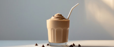 AI Generated. Creamy Peanut Butter Chocolate Smoothie in a Glass with Straw