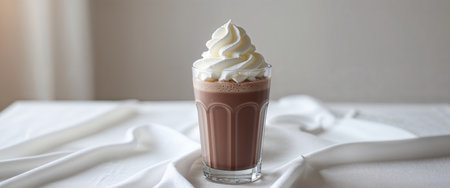 Chocolate milkshake with whipped cream in a glass on the table