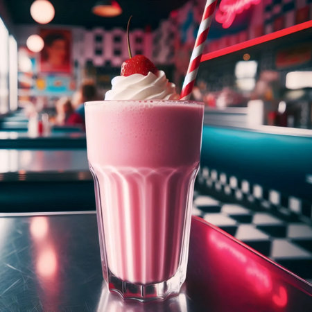 A vintage milkshake served in a classic 1950s diner glass, Ai generated image