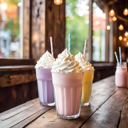 Experience the joy of vibrant milkshakes showcasing irresistible flavors in a lively setting.