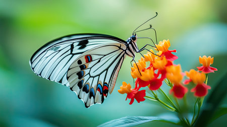 A stunning close-up of a colorful butterfly perched on a vibrant flower, showcasing the beauty of nature. Perfect for themes of wildlife and serenity.