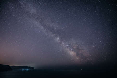 Milky way over the sea at night. Long exposure photograph.