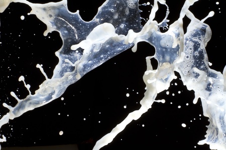 Splashes of spilled milk on a dark background. Abstraction