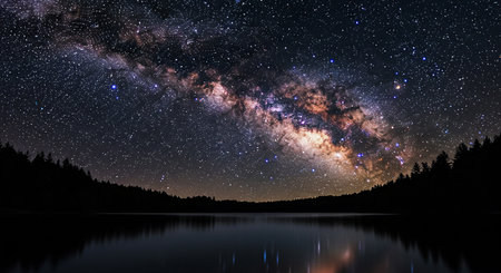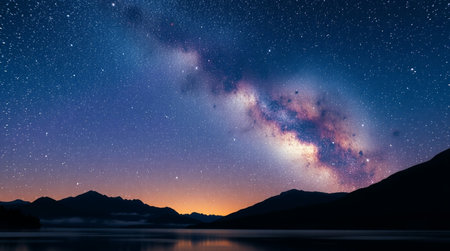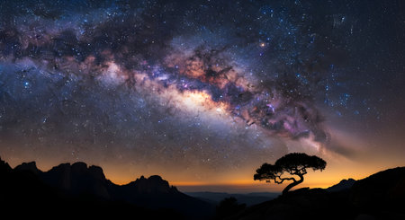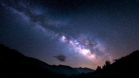 A breathtaking view of the Milky Way galaxy shines in the deep night sky filled with twinkling stars and cosmic clouds, inviting exploration and wonder.