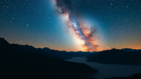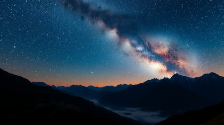 Milky way over the mountains with starry sky at night.