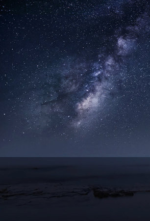 Milky Way over the sea at night. Long exposure photograph.
