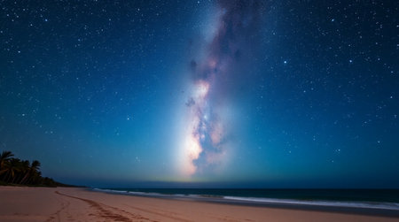 Milky Way over the beach at night with starry sky.