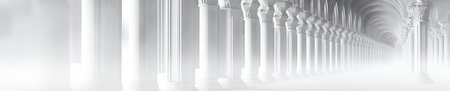Beautiful architectural white panorama baner with shadow from columns. abstract light background