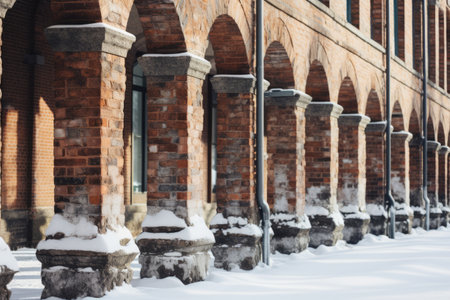 Close up of columns in winter evening