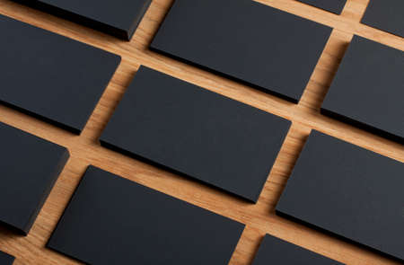 identity design, corporate templates, company style, blank business cards on a wooden background