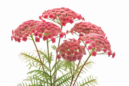 Achillea flowers over white background, close up