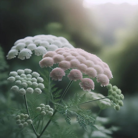 Generative AI : Yarrow pale pink flowers close up
