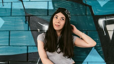 teen boy or student on street wall with copy-space