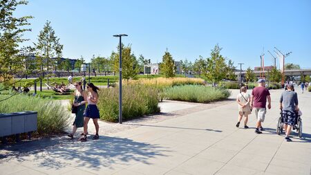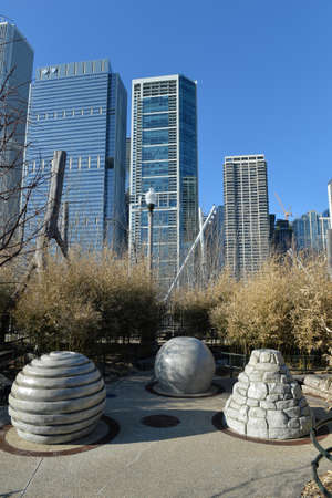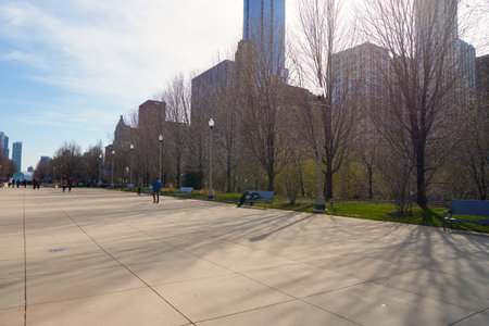 Chicago, Usa - march 14, 2018: View of the horizon in wind city on a spring day, Maggie Daley Park