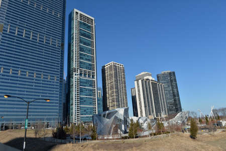 CHICAGO, IL - CIRCA MARCH, 2016: view from Millennium Park. Millennium Park is a public park located in the Loop community area of Chicago in Illinois, US, and originally intended to celebrate the second millennium.