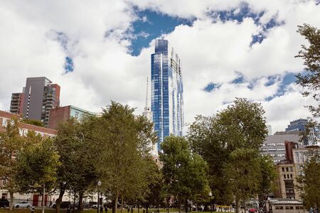 Boston, Massachusetts - October 4th, 2019: Cityscape surrounding Boston Common on a Fall day in the Back Bay neighborhood
