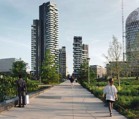peoples walking in front of modern buildings in Milan - Lombardy - business center