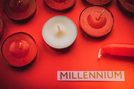 LONDON, UK - CIRCA SEPTEMBER 2019: People crossing Millennium Bridge over River Thames linking the City of London with the South Bank between St Paul Cathedral and Tate Modern art gallery in black and white