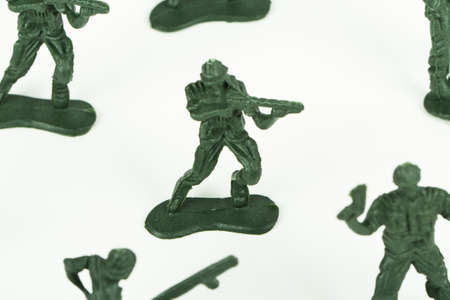 Miniature toy soldiers, isolated on white background.