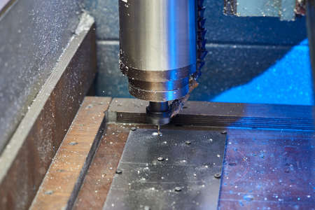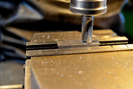 CNC milling machine working, Cutting metalwork process. Milling machine working on steel detail.