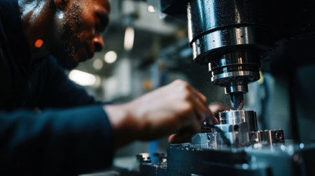 An industrial worker operating a CNC machine intricately milling metal parts showcasing the advanced technology used in precision manufacturing