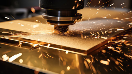 CNC milling machine cutting metal with sparks. Metalworking industry