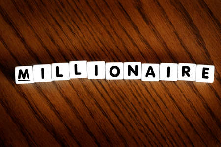 Millionaire spelled with letter blocks dice as motivation for financial success and prosperity