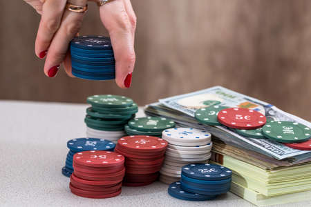 poker chips in hand with money