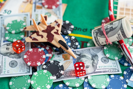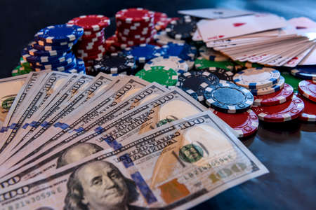 Dollar banknotes with poker chips and playing cards
